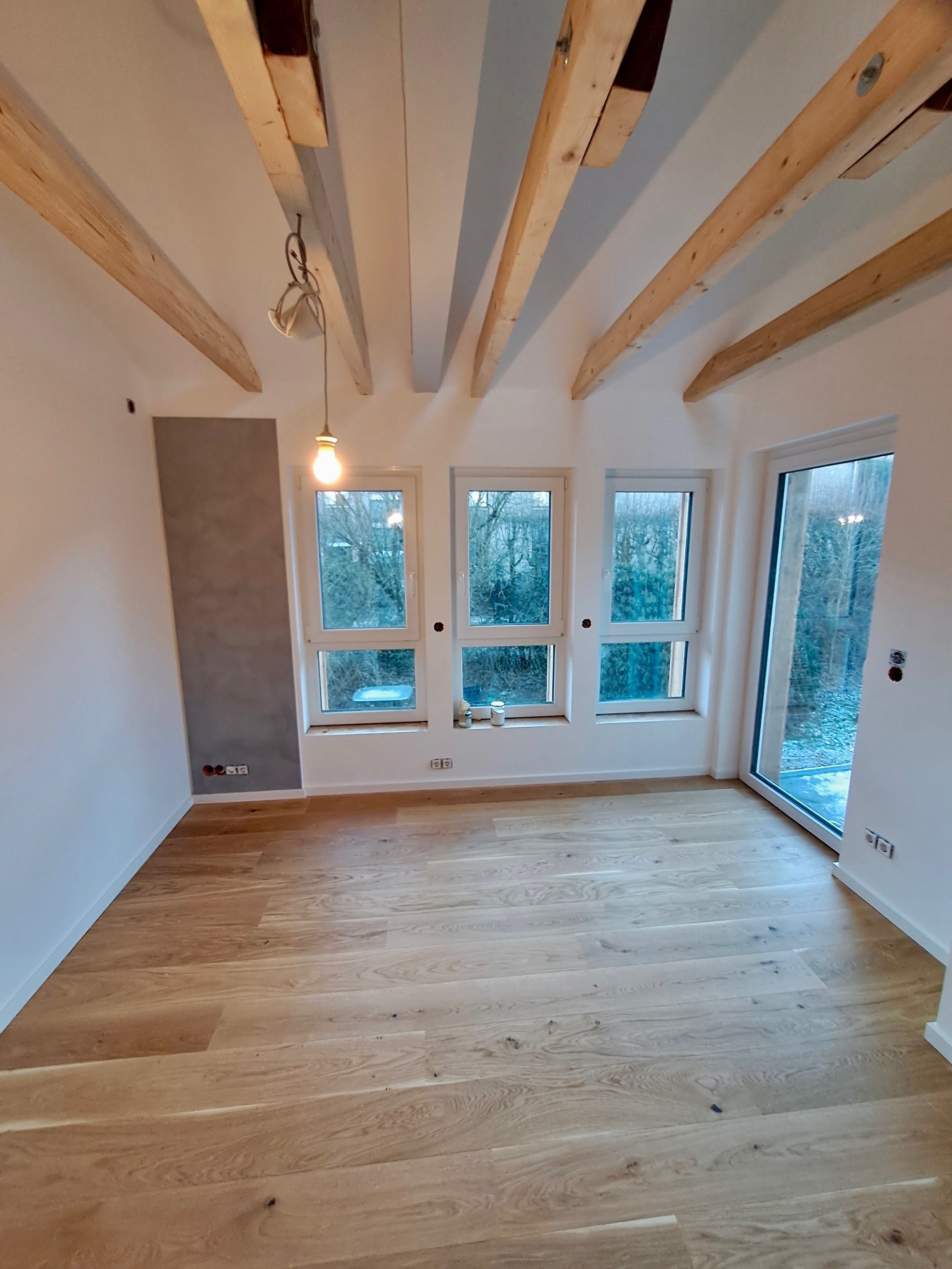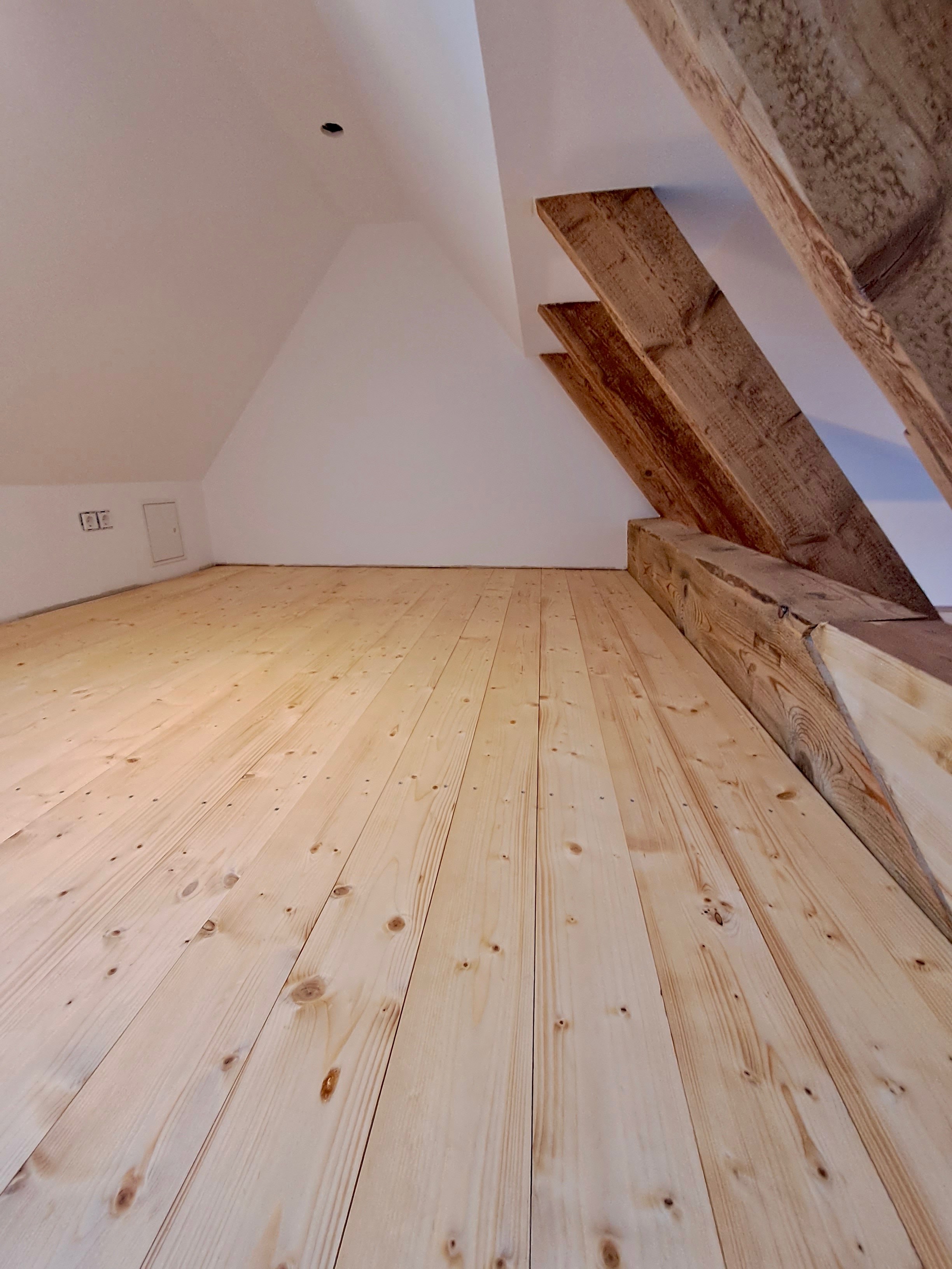 Innenansichten der Gaube mit Lehmwandheizungselementen
